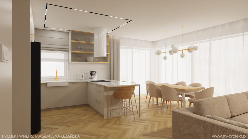 - Parter: salon z kuchnią (35 m2), łazienka, kotłownia, hol, wiatrołap, garaż (19 m2)