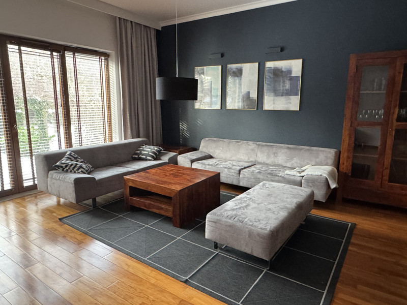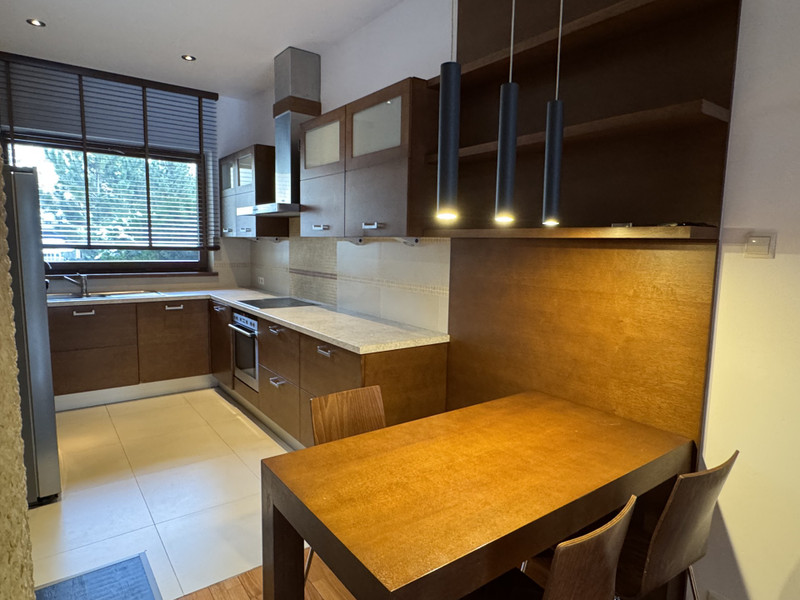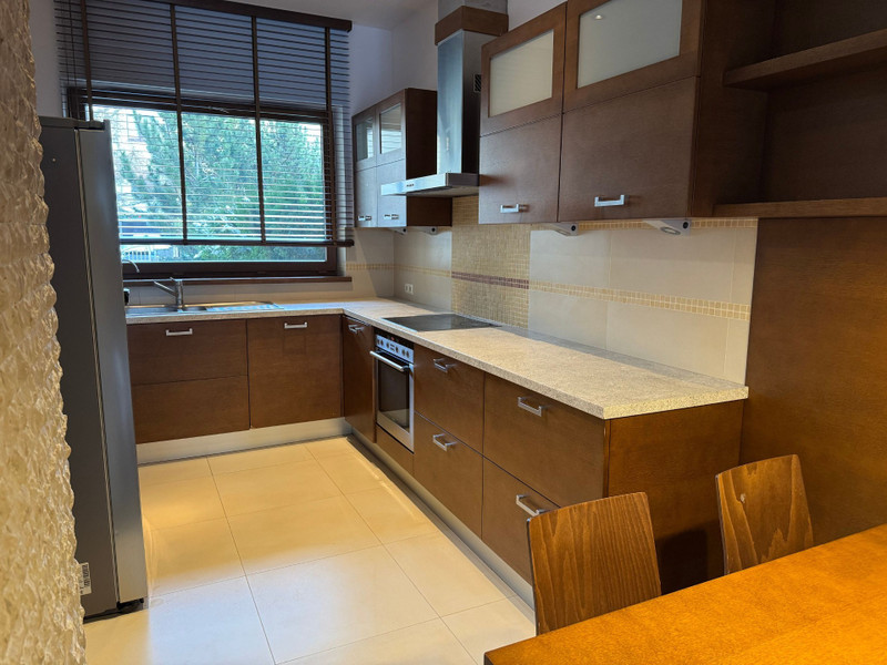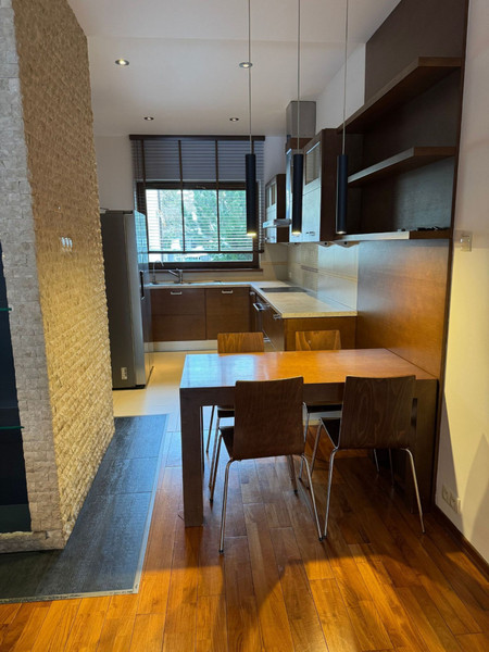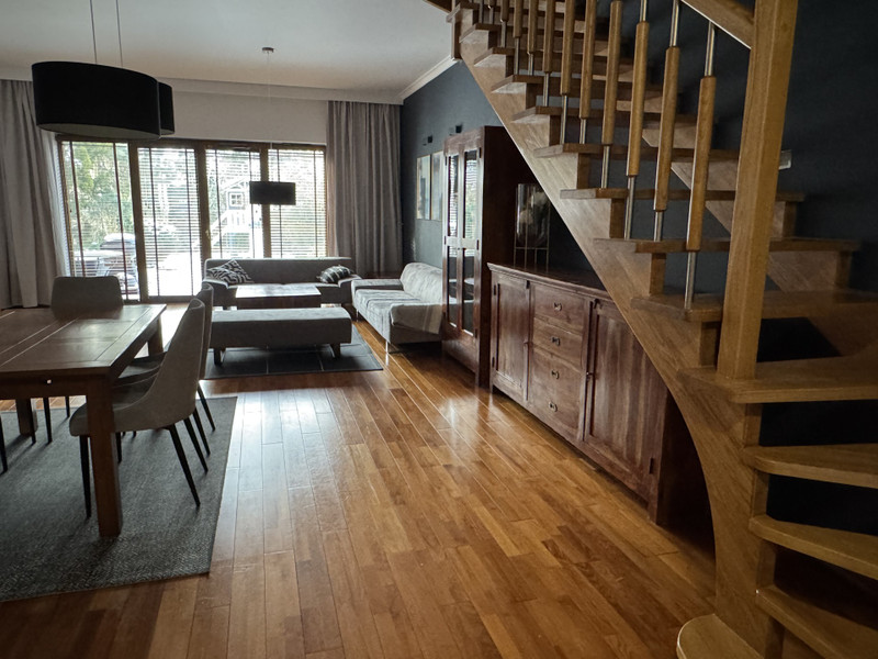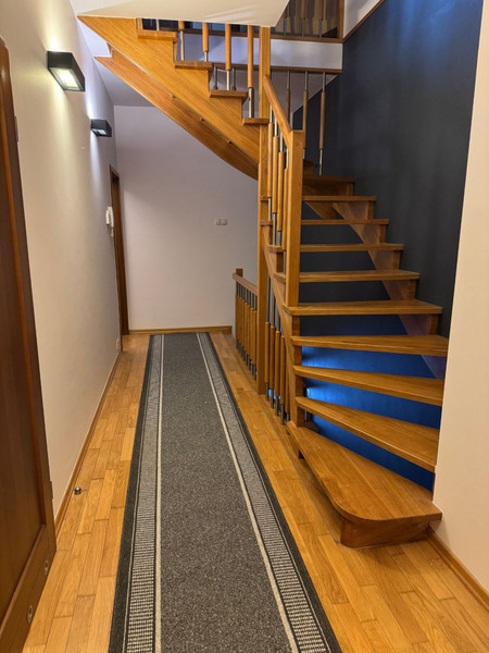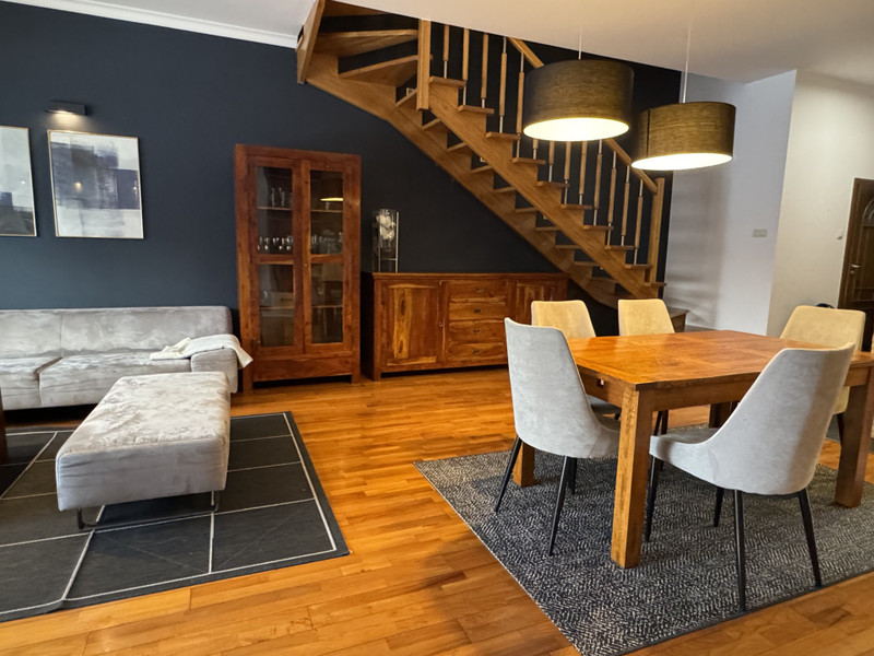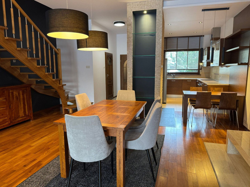Do wynajęcia elegancki, komfortowy i nowoczesny dom w zabudowie szeregowej o powierzchni całkowitej ok. 220 m², z garażem w bryle budynku.