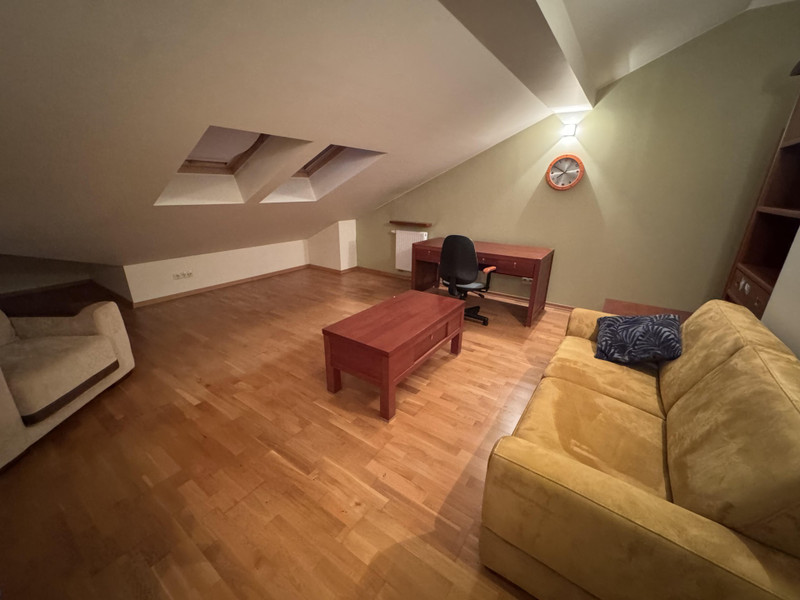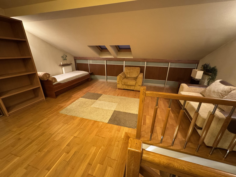 Dom posiada drugie piętro (poddasze użytkowe), które stanowi wyjątkowy atut nieruchomości. To przestronny strych z wysokimi skosami, dający poczucie dużej przestrzeni i wyjątkowego klimatu.