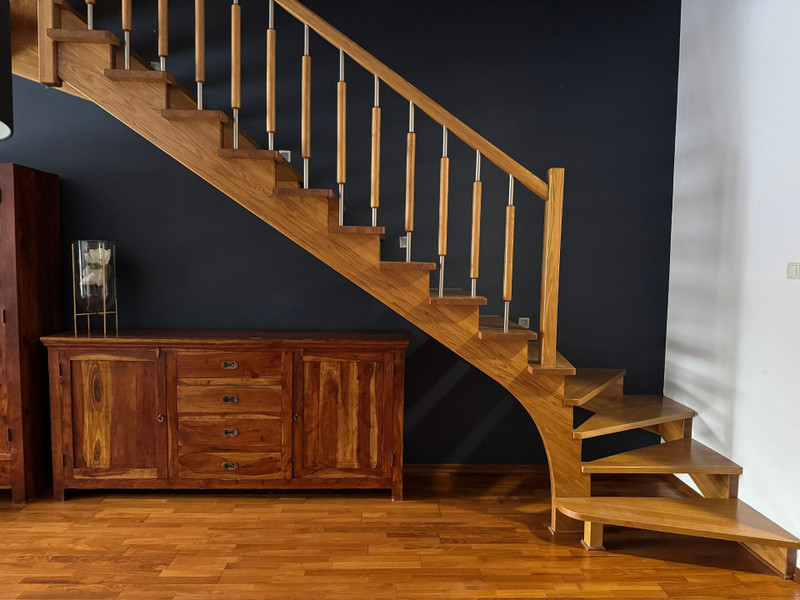 Cały parter zaprojektowany został w układzie open space, co zapewnia poczucie przestrzeni, harmonii i swobody, a naturalne drewno nadaje wnętrzu ciepła i elegancji.