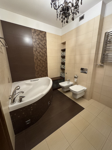 • sypialnia główna z dużą garderobą w zabudowie (bez mebli sypialnianych) + prywatny, pokój kąpielowy z narożną wanną, podwójną umywalką, dużym lustrem i praktycznymi wnękami,