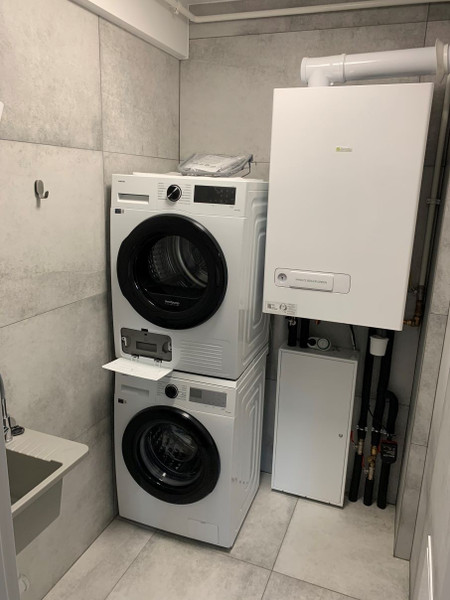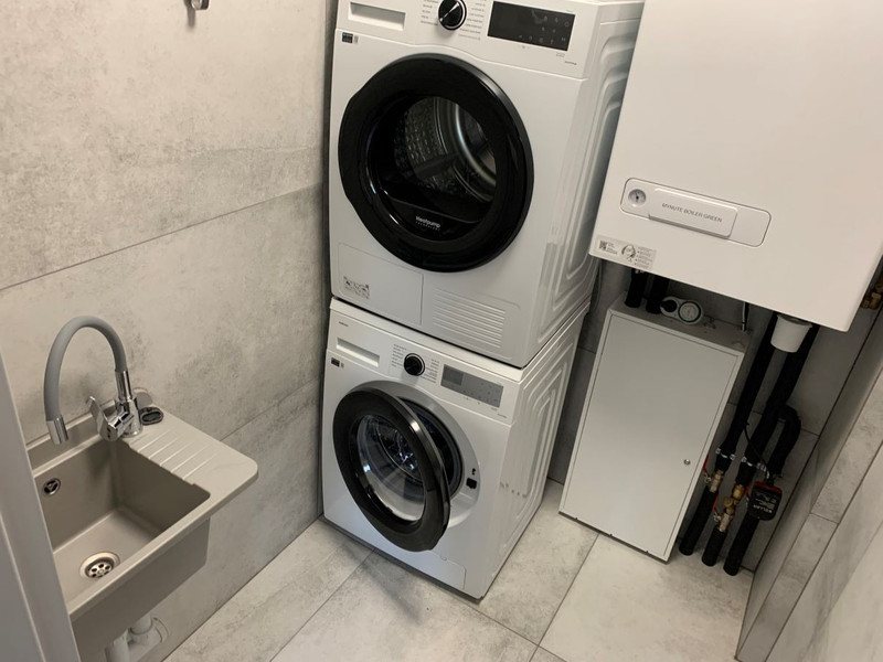 - kuchnia wraz ze sprzętem AGD : piekarnik, mikrofala, zmywarka, lodówka, płyta indukcyjna.