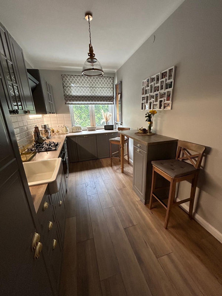Wszystkie okna plastikowe. Media miejskie. Ogrzewanie gazowe. Na podłogach parkiet dębowy. Kuchnia i łazienki w pełni umeblowane (lodówka, zmywarka, płyta gazowa, piekarnik elektryczny, pralka), pozostałe umeblowanie do uzgodnienia.
