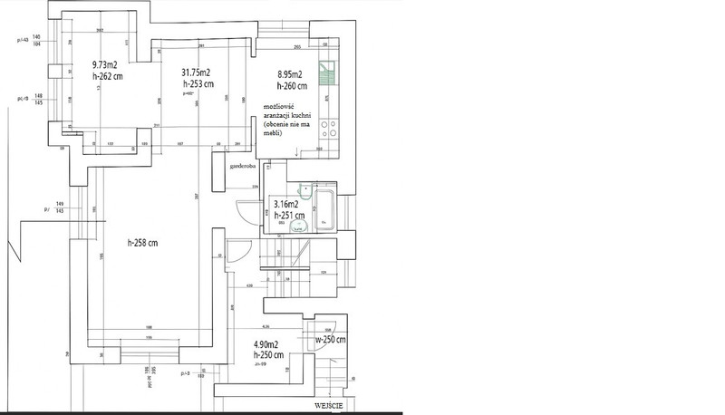 • parter: open space z możliwością wydzielenia 4 pokoi , łazienka, garderoba.