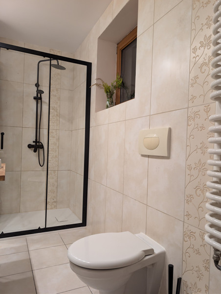Przestrzeń jest odświeżona i jasna dzięki dużej ilości okien. Ogrzewanie zapewnia piec gazowy (bieżąco serwisowany), w salonie jest też przytulny kominek.