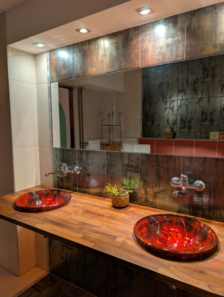 Dom ma powierzchnię ok. 250m2, 14 pomieszczeń (w tym 5 pokoi, 3 łazienki, 2 salony, jadalnia, kuchnia i garaż), przestronny taras, balkon oraz ogródek. Jest w pełni wyposażony we wszystkie udogodnienia - przybory kuchenne, pralkę, zmywarkę oraz meble w salonie, jadalni jak i pokojach.
