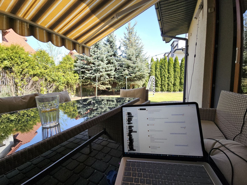 • Zadaszony taras z kompletem mebli wypoczynkowych.