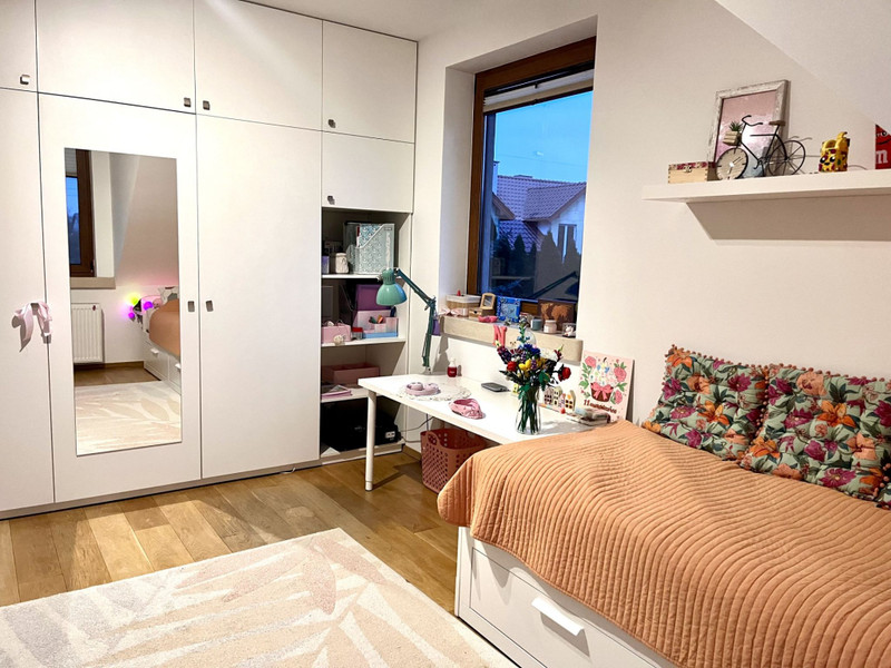 2 Pokoje (Młodzieżowe/Gabinet): Każdy wyposażony w rozsuwane łóżko (Ikea, z 1-osobowego na 2-osobowe), dużą szafę oraz wygodne biurko z krzesłem – idealne warunki do nauki lub home office.