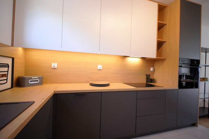 Aneks kuchenny wyposażony w płytę indukcyjną, okap, piekarnik oraz zmywarkę.