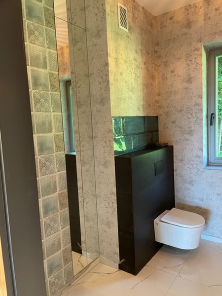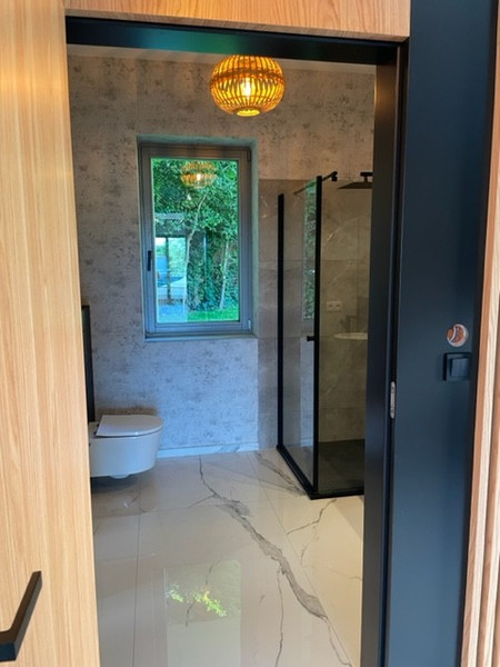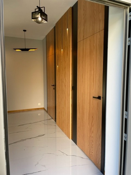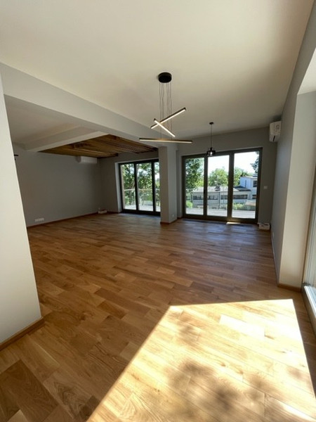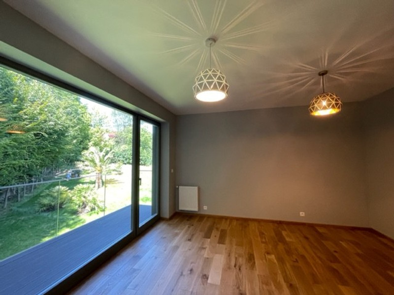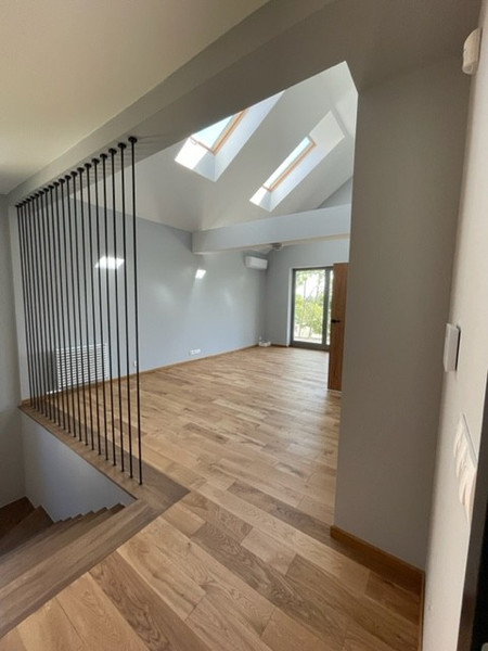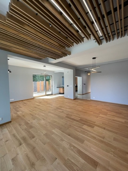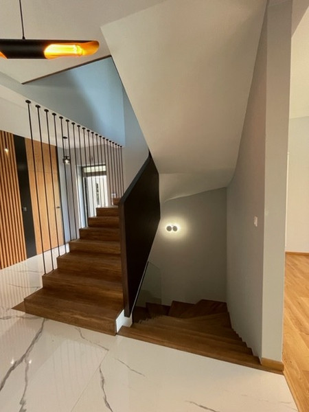 Budynek wykończony w bardzo wysokim standardzie, z możliwością natychmiastowego zamieszkania. W części przyziemnej kotłownia, pralnia, duży garaż na 2 stanowiska, niezależne bramy wjazdowe do garażu dla każdego stanowiska, łazienka, pomieszczenie gospodarcze. W strefie dziennej ogromny salon z otwartą kuchnią, garderoba, łazienka, wyjście na taras. Kolejne piętro to 3 sypialnie, 2 łazienki, biblioteka. Klimatyzacja, centralny odkurzacz, rolety okienne zewnętrzne, teren zamknięty.