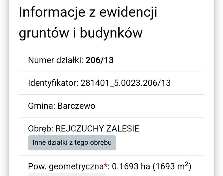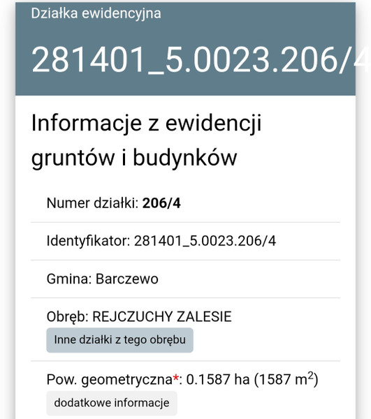 Sprzedam działki budowlane ( określa to plan zagospodarowania przestrzennego, przeznaczenie budowlane z możliwością usługową). Działki nr 206/4-powierzchnia 1589 m2 oraz 206/13 powierzchnua 1696m2 miejscowość Rejczuchy, obręb Zalesie, gmina Barczewo,Warmińsko- Mazurskie. Działki znajdują się nad jeziorem Kiermas bez dostępu do linii brzegowej. Działki są uzbrojone ( woda,prąd) z dojazdem drogą utwardzoną, zjazd bezpośrednio z drogi asfaltowej. Położone 3 km od miasta Barczewo, 20 km od miasta wojewódzkiego Olsztyn. Okolica cicha, na łonie natury, pola, lasy i bliskość jezior Kiermas, Kierzlińskie, Orzyc, Pisz, Umląg). Nie współpacuję z Biurami Nieruchomości.