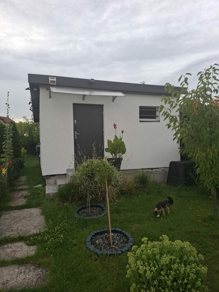 Na działce posadowiona 4 lata temu altanka o powierzchni ok. 20 m². Altana wymurowana z pustaka 18 cm, ocieplona styropianem grafitowym 10 cm. Dach blacha trapezowa. Drzwi antywłamaniowe x2, okna PCV. W bryle altanki komórka z osobnym wejściem, w której znajduje się zejście do piwnicy. W komórce są regały na narzędzia. W altanie w pełni umeblowany aneks kuchenny z 3 palnikową kuchenką i butlą gazową, 2 rozkładane kanapy z pojemnikami na pościel, stół z krzesłami, szafa, komoda i półki. Jest także łazienka z WC i małą wanną (na działce jest niewielkie szambo, które na koniec ubiegłego sezonu zostało opróżnione) Na podłodze w całej altanie, na ścianach w aneksie kuchennym oraz w łazience położone kafelki. Na pozostałych ścianach tynk mineralny a na suficie panele ozdobne PCV.