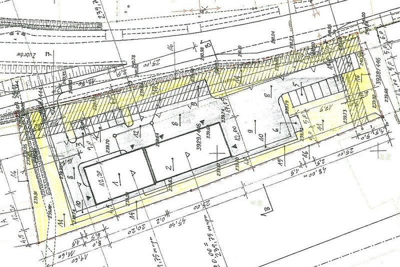 UWAGA – na działce wydano pozwolenie na budowę – budowa obiektu biurowo-magazynowego z zapleczem mieszkalnym. Schemat na ostatnim zdjęciu. Obiekt idealny na warsztat, biura, gabinety z usługami doraźnymi bądź mieszkania.