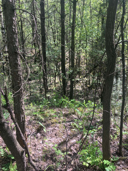 Teren niezabudowany, częściowo zalesiony, porośnięty krzewami z lokalnymi pozostałościami infrastruktury technicznej. Teren nie jest ogrodzony