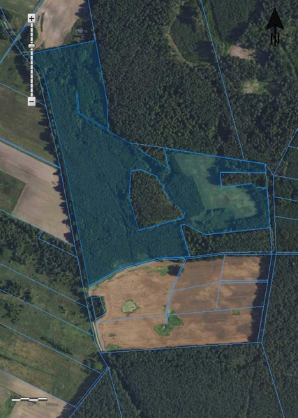 Działka o całkowitej powierzchni 18 ha przy drodze, z dwudziestoletnim lasem o pow 13.9 ha przylegającym do lasów państwowych. Las sadzony wg planu nadleśnictwa. Pozostały obszar to 2 ha łąki i ziemia rolna, idealne na siedlisko w okolicach rzek, jezior i Drawieńskiego Parku Narodowego