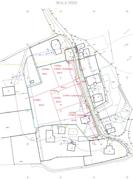 ;Działka 600/4 ( 1787 m2 ). Klasyfikacja MNU, Gaz i energia elektryczna w działce 600/3, woda w działce 600/4. Dojazd drogą wewnętrzną , którą jest działka 600/3. Działki mają służebność w doprowadzeniu wody do działki 600/5. Cena 170 zł za m2. Do działki 600/4 jest przypisana działka 600/3 ( 300 m2 - droga dojazdowa) w cenie 170 zł/m2