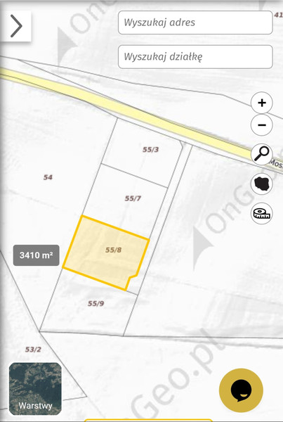 Na sprzedaż działka rolna nr 55/8 o powierzchni 3410 m², położona w Gniewinie przy ul. Mostowej (obręb 0005).
