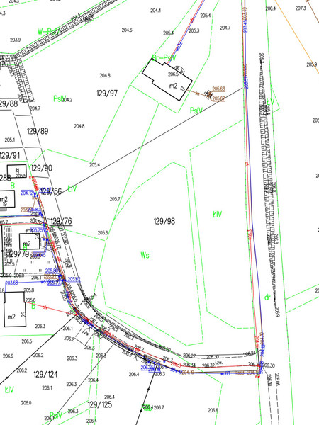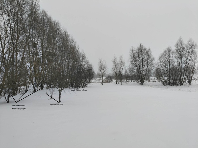 Cały areał to 6907m2 w tym około 2500m2 zarybiony staw. Teren nie jest objęty miejscowym planem zagospodarowania i od grudnia 2025 trwa postępowanie w gminie o wydanie warunków zabudowy dla trzech domów jednorodzinnych dla wyżej wymienionej działki.