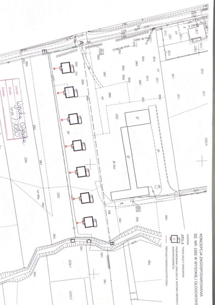 Działka o powierzchni ok. 44,5 ara, z wydanymi warunkami zabudowy umożliwiającymi budowę 7 domów jednorodzinnych. Istnieje możliwość podziału na maksymalnie 7 mniejszych działek, każda o powierzchni nie mniejszej niż ok. 6.5 arów.