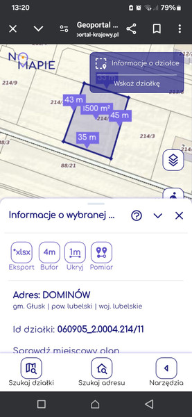 Sprzedam działkę budowlaną o powierzchni 15a w Dominowie Gmina Głusk, media w sąsiedniej działce, dobra lokalizacja, dojazd droga utwardzoną płytą betonową, teren równy, więcej informacji pod numerem telefonu.