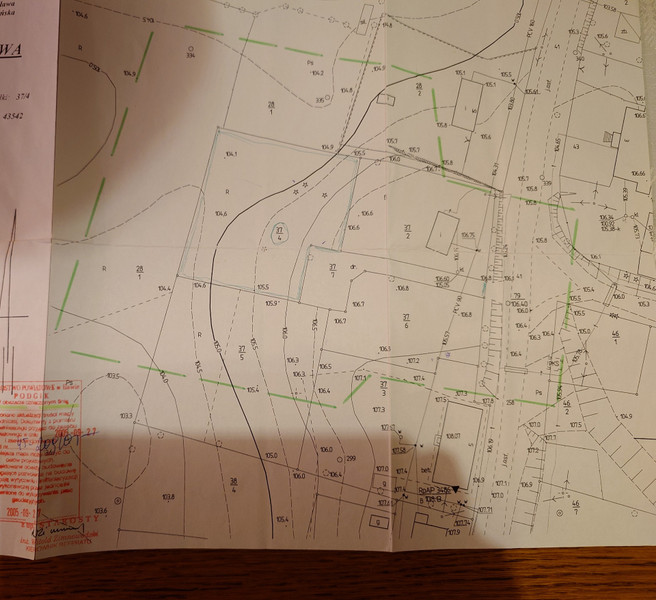 W załączeniu mapa do celów projektowych, w której znajdziecie dokładne położenie działki i dojazd. Numer działki 37/4.