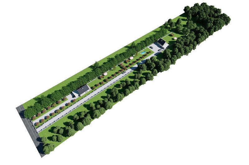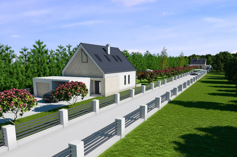 Przedmiotowa nieruchomość składa się z dwóch działek ewidencyjnych numer 159/15 (powierzchnia 1616 m2) i 159/16 (powierzchnia 2869 m2). Dla każdej z działek zostały wydane prawomocne Warunki Zabudowy dla inwestycji polegającej na budowie budynku mieszkalnego jednorodzinnego oraz budynku gospodarczo-garażowego. Trzy pierwsze zdjęcia przedstawiają przykładową koncepcję zagospodarowania nieruchomości.