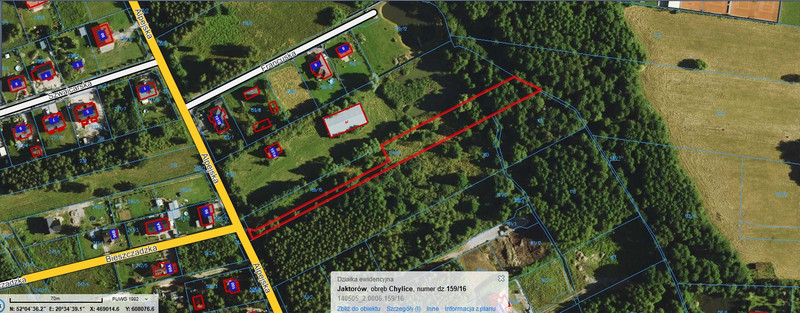Nieruchomość położona jest niedaleko od ścisłego centrum Jaktorowa i PKP. Bardzo dobry dojazd asfaltowymi, utwardzonymi ulicami. Teren zadbany, regularnie koszony, z drzewami. W niedalekiej okolicy łąki, stawy i rozległe lasy ze ścieżkami rowerowymi i pieszymi. Zgodnie ze Studium Uwarunkowań i Kierunku Zagospodarowania Przestrzennego Gminy Jaktorów nieruchomość przeznaczona pod zabudowę mieszkaniową jednorodzinną. W pobliżu żadnej uciążliwej zabudowy i taka też nie powstanie w przyszłości, zgodnie z przeznaczeniem terenu. W okolicy nowe zamieszkałe domy jednorodzinne i kolejne nowo powstające. W pełni kompletna i aktualna dokumentacja nieruchomości, czysta Księga Wieczysta. Bardzo szybko rozwijająca się okolica w Gminie Jaktorów.