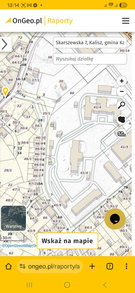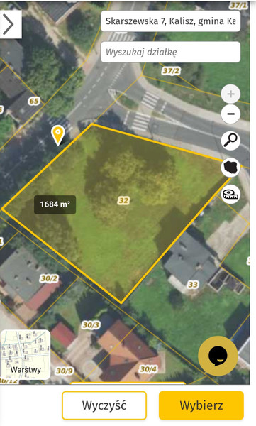 Na sprzedaż działka budowlana o powierzchni 1684 m², położona w Kaliszu przy ul. Skarszewskiej 7, naprzeciwko Szpitala Matki i Dziecka (ul. Toruńska).