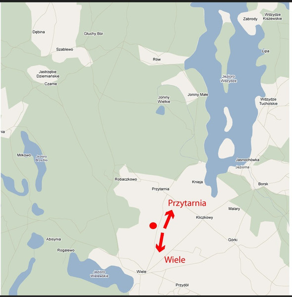 1500 m od jez. Wielewskiego oraz 900 m od miejscowości Przytarnia