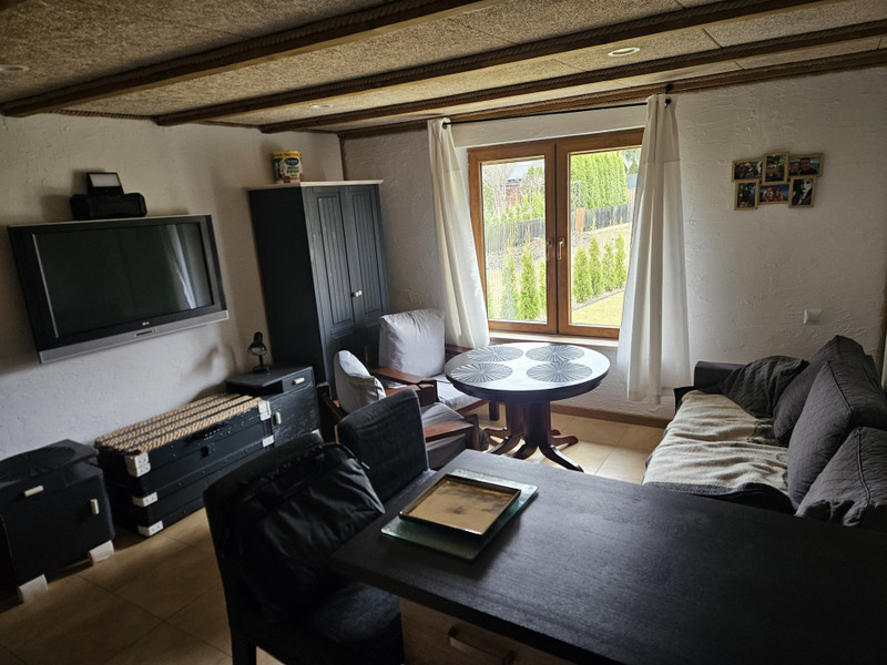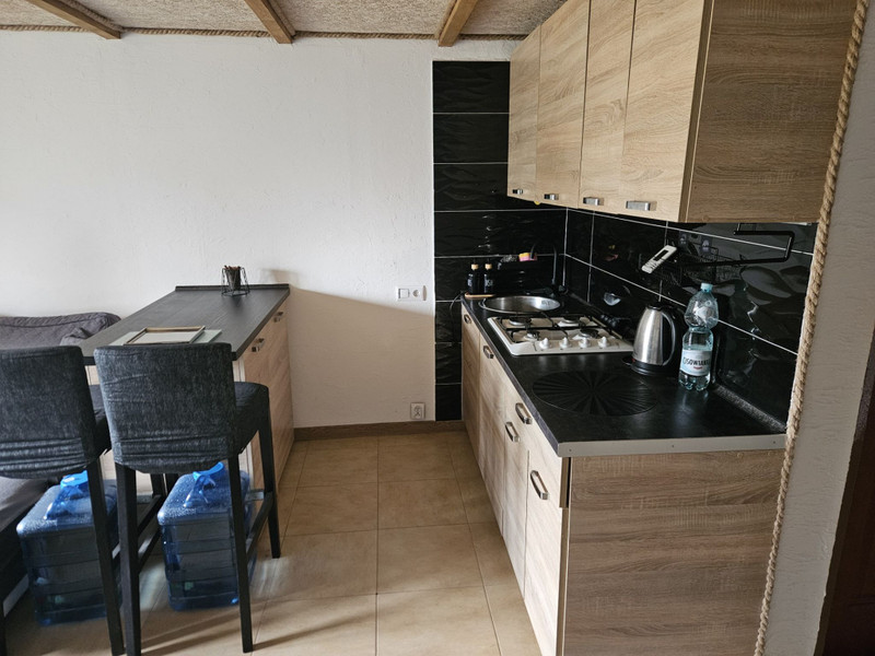 - duży salon z aneksem kuchennym (TV, zlew, lodówka w zabudowie, płyta gazowa 4-palnikowa, meble kuchenne robione na wymiar),