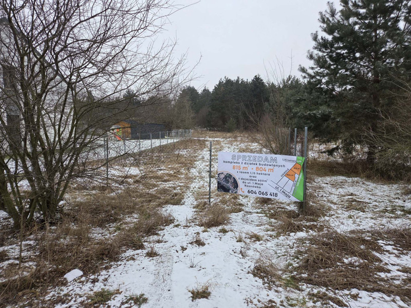 Sprzedam kompleks dwóch działek budowlanych (dz. 50/34 i 50/35, obr. Rosnówko Walerianowo) o powierzchni 815m2 i 804m2 z dojazdem 600m2 (dz. 50/36) do ul. 1 Maja w Rosnówku, gm. Komorniki, z przyległym lasem 1,15ha (dz. 50/31).