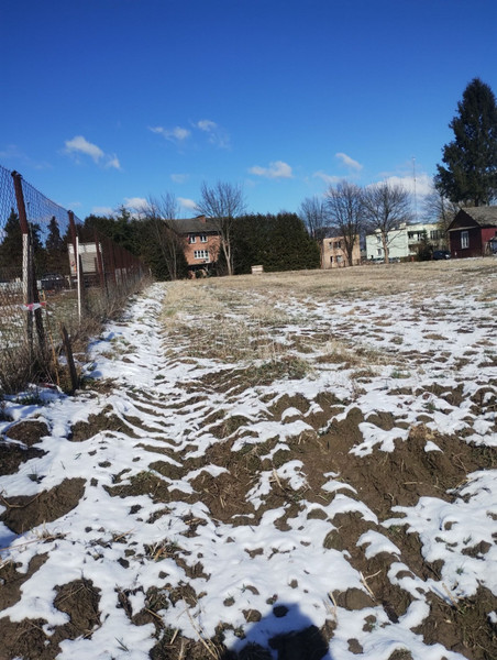 Teren oczyszczony z roślinności, gotowy do realizacji inwestycji.