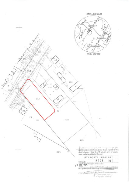 Nr działki 242/1, powierzchnia 1614 m2, wymiary 24m x 67m.
