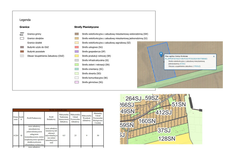 Teren, na którym znajduje się nieruchomość objęta jest studium i tworzonym planem ogólnym 412 SJ. - tereny zabudowy mieszkaniowej jednorodzinnej, teren usług, teren zabudowy letniskowej lub rekreacji.