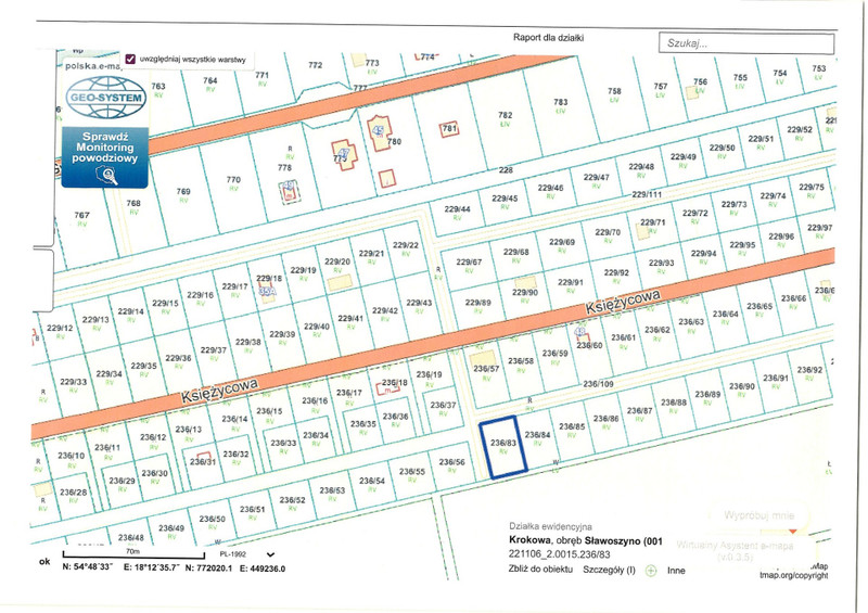 Na sprzedaż atrakcyjna działka rekreacyjna w kształcie prostokąta o powierzchni 503 m², położona w Sławoszynie, w sąsiedztwie Karwieńskich Błot Pierwszych. Warunki zabudowy w trakcie realizacji jest możliwość przyłączenia do sieci energetycznej. W bezpośrednim sąsiedztwie działki znajdują się domy jednorodzinne i rekreacyjne oraz działki niezabudowane. Z jednej strony graniczy ona z drogą dojazdową do sąsiednich posesji tego samego typu, a z drugiej z ulicą bez połączenia z inną, co jest dużym atutem jeśli chodzi o parkowanie pojazdów poza posesją. Oszczędza to zdecydowanie miejsce. Działka znajduje się ok. 3 km od plaży w Karwii. Świetna lokalizacja dla osób poszukujących przestrzeni do rekreacji, jak i inwestorów rozważających zabudowę domku po wynajem sezonowy.