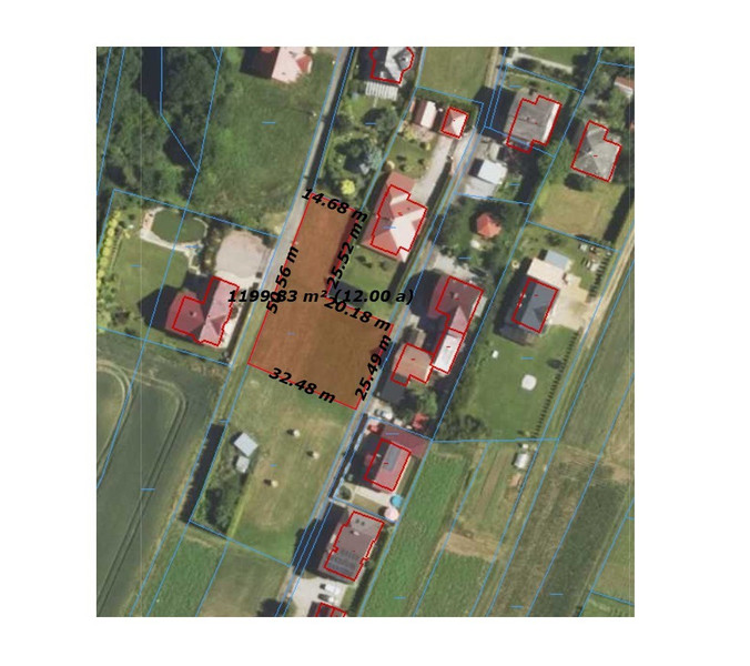 • Powierzchnia i wymiary:12 arowa = 1200m2, kształt działki Litera L