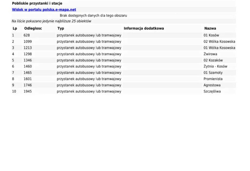 Do Warszawy możemy również dotrzeć autobusami ZTM linii 703 i 721, przystanek znajduje się koło 900 metrów od działki.