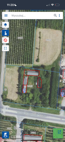 Całość składa się z trzech dużych działek rolno budowlanych i ornych oraz z dużego sadu. Wszystko o wielkości 1.52ha (15200.00m2)