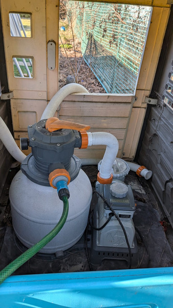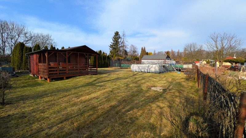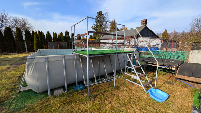 Na działce znajduje się duży basen 5m x 5m z pompą piaskową oraz panelami grzewczymi.