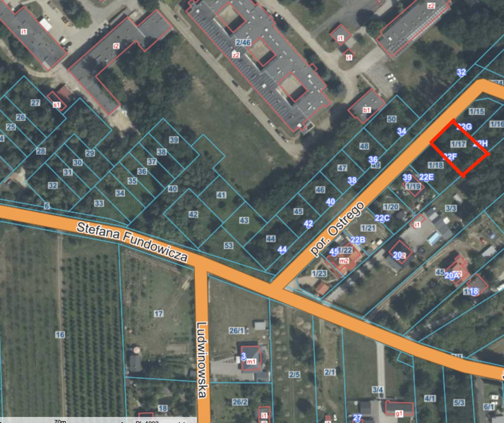 • dostęp do drogi publicznej – ul. por. Ostrego