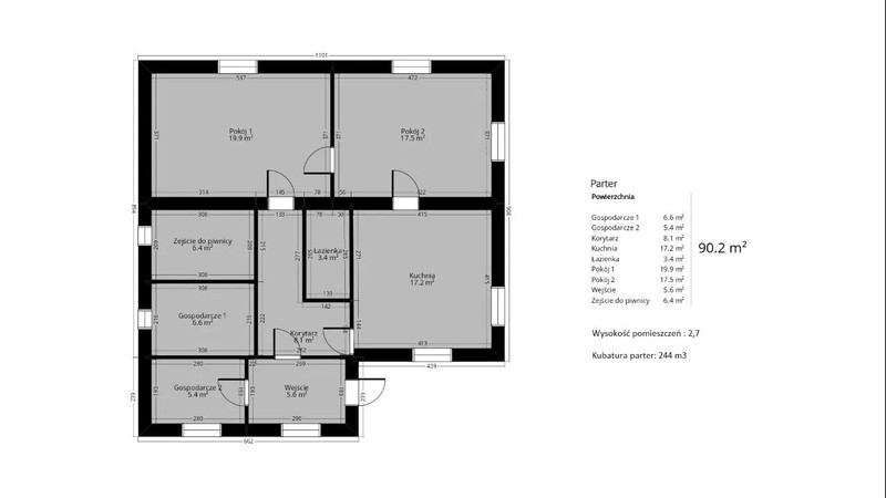 Dom składa się z piwnicy, parteru oraz poddasza z balkonem które można przeznaczyć na dodatkowe pokoje. Przybliżone rzuty każdej kondygnacji znajdą pastwo w zdjęciach