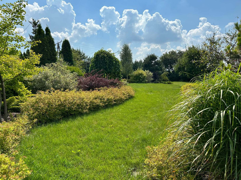 Na działce znajduje się przepiękny ogród, idealny dla miłośników zieleni i relaksu na świeżym powietrzu.