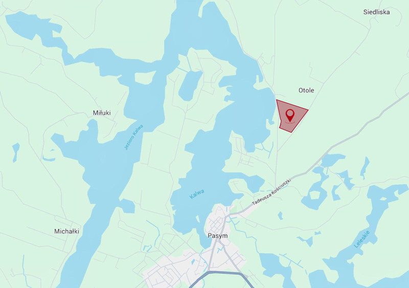 Nieruchomości położone są w gminie Pasym (powiat szczycieński, woj. warmińsko-mazurskie) w bardzo bliskiej odległości od brzegu jeziora Kalwa – jednego z największych jezior Warmii i Mazur, stanowiącego jedno z kluczowych atutów lokalizacyjnych regionu Pasymia. Procedura licytacyjna umożliwia nabycie nieruchomości w trybie sądowego przysądzenia własności, z zachowaniem pełnej transparentności oraz jasno określonego harmonogramu czynności. Dla każdej nieruchomości odbędzie się osobna licytacja komornicza.