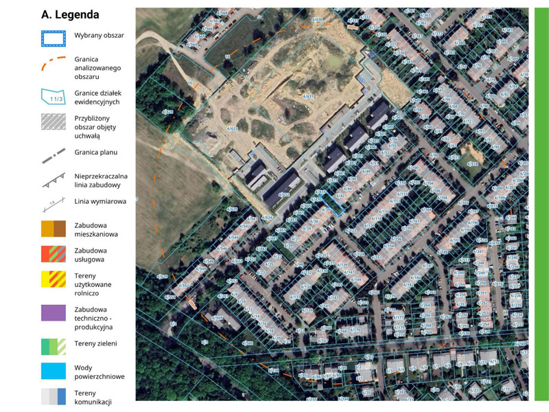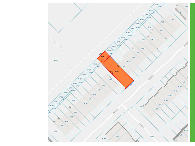 Status: działka budowlana pod budynek w zabudowie szeregowej (skrajna działka).
