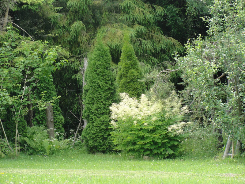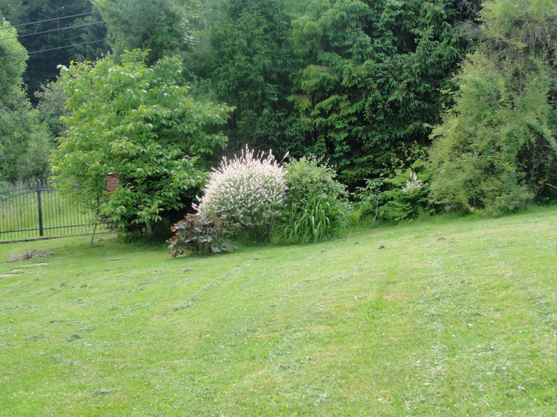 Jest wiele nasadzeń krzewów ozdobnych i kwiatów.