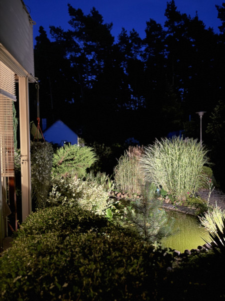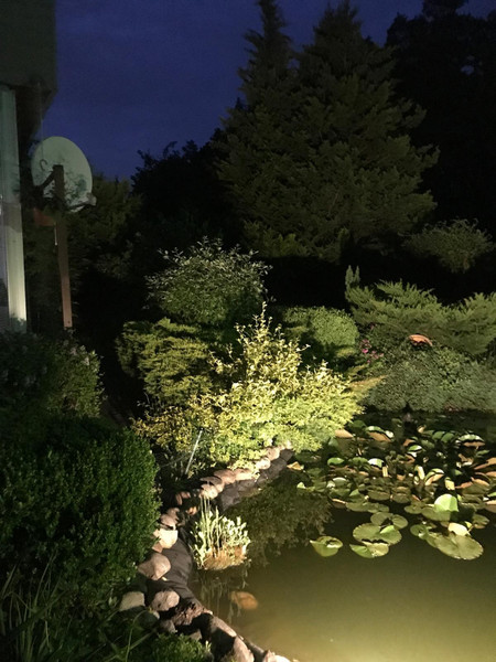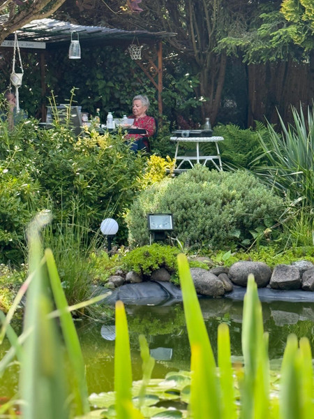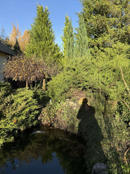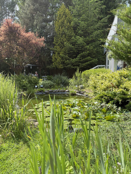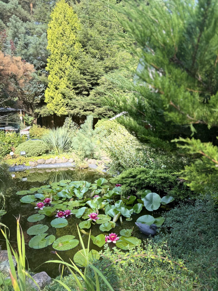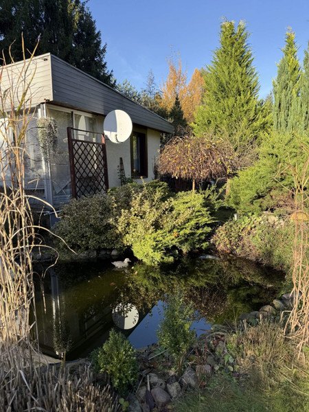 Na działce oprócz domku, znajduje się zarybione oczko wodne z liliami i nasadzeniami wokół. Jest również altanka z meblami ogrodowymi.