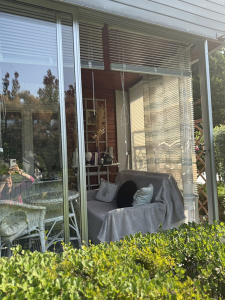 Na przeszklonym zabudowanym tarasie (funkcja drugiego pokoju) stoi rozkładana sofa, stolik i foteliki. Domek jest częściowo podpiwniczony (funkcja przechowywania) i posiada pawlacz pod sufitem. Jest też tv sat.
