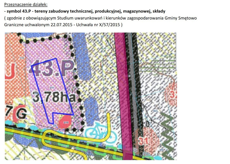 Teren w zgodnie ze Studium Gminy Smętowo - uchwała nr.X/57/2015 ma być przeznaczony pod