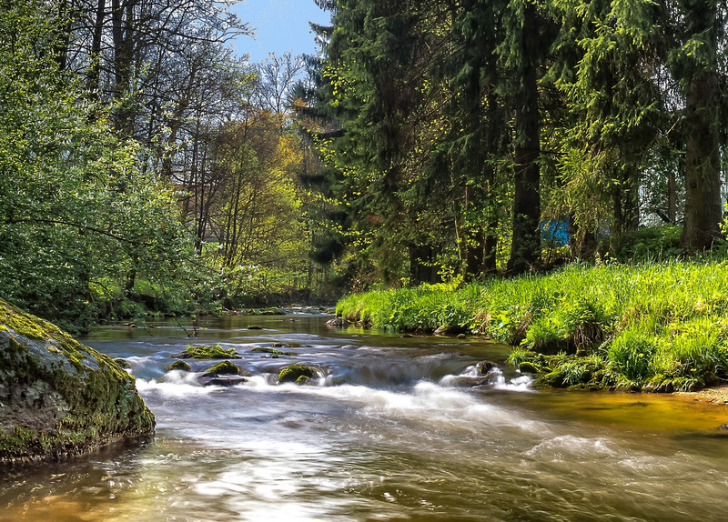 Pierwsza rzutem do lasu, bo niespełna w minutę wchłaniamy zmysłami ultra witalną wersję rzeczywistości, stojąc już wysokim skrajem w otwarciu tętniącego przyrodą wąwozu, w którym rzeka wędrując z Gór Izerskich, uszlachetnia mikroklimat zjonizowaną bryzą biosfery. Ten benefit dla dróg oddechowych, był stosowany w leczeniu sanatoryjnym już od XIX-go wieku. Nienaruszony ekosystem i geologiczne smaczki mijamy duktami pieszo, a nawet rowerem (ER-6) - i tak można do jeziora z łukowym mostem kolejowym i zapory Pilchowice. Powiew energetyzującego doznania i przygody w minuty spacerem od domu? Absolutnie realna rzeczywistość, tuż za własną działką! Proszę wskazać porównywalną, nie wspominając, odlotowej zwykle ceny.