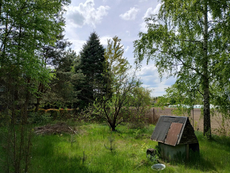 Na terenie rosną okazałe świerki i brzozy, które mogą stanowić piękne otoczenie wokół nowego budynku. Sąsiedztwo to domy jednorodzinne, letniskowe oraz pole, okolica jest cicha.